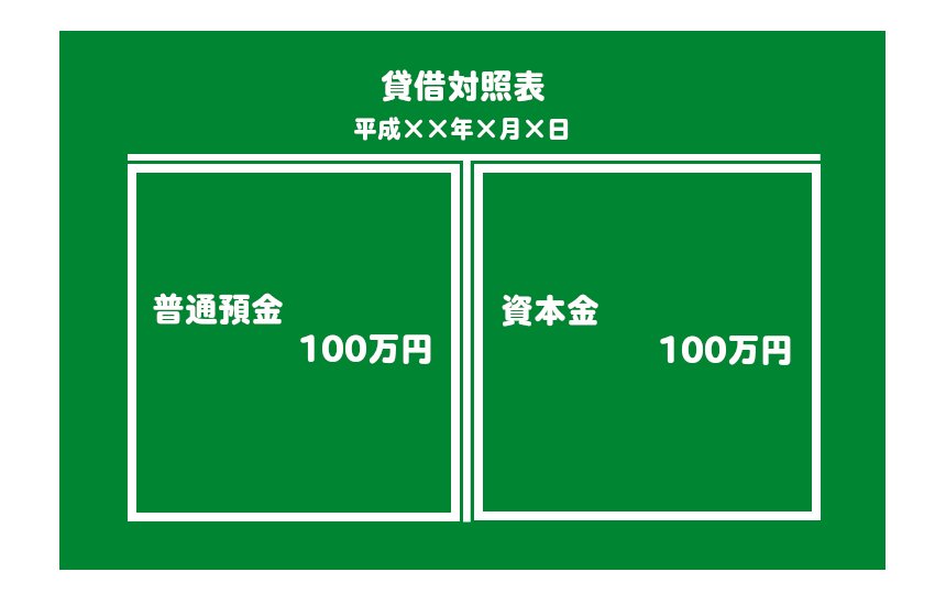 (例)金100万円を元手に会社の普通預金に入金し開業しました。