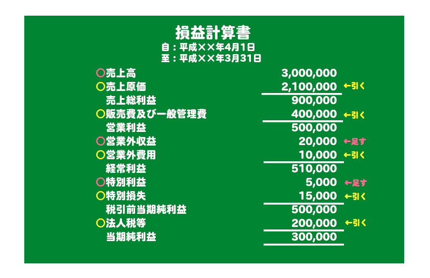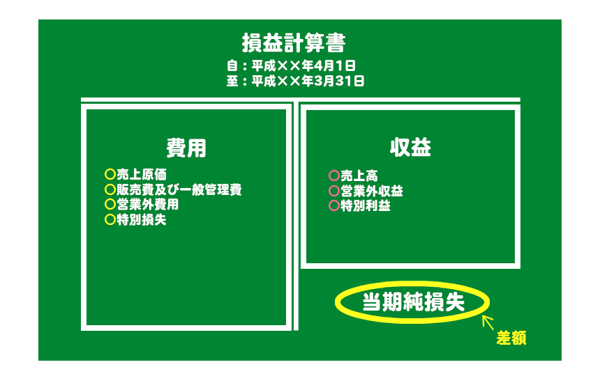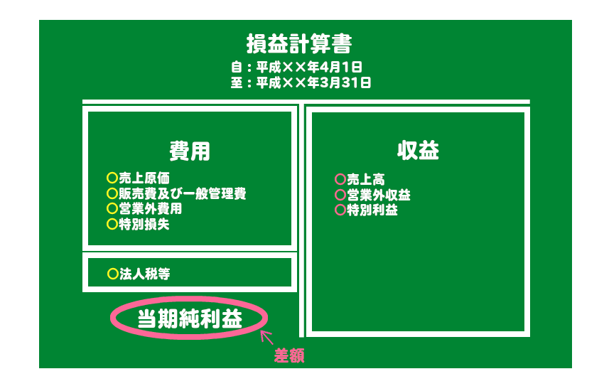 損益計算書とは表の期間(決算書の場合は期首から期末)における会社の営業成績を計算したものです。